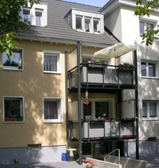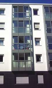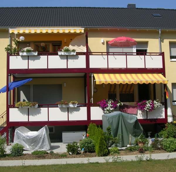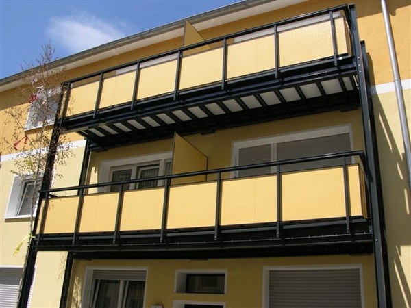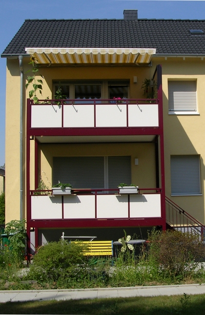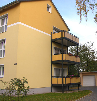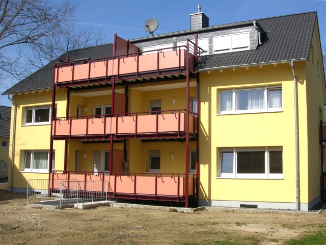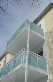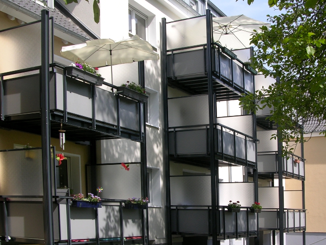 Die alten Balkone wurden durch neue Systembalkone ersetzt. Auch alle Dachgeschosswohnungen erhielten ebenso Systembalkone.