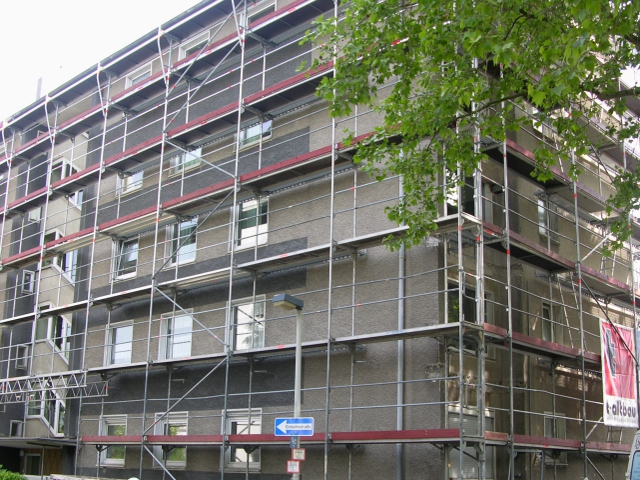 Die Gebäude in Bonn werden momentan einer Komplettsanierung unterzogen: die alten Balkone werden abgebrochen und durch neue Systembalkone ersetzt, Dächer und Fassaden werden gedämmt, die alten Fenster und Hauseingangstüren werden ausgetauscht, die Elektroanlagen werden erneuert und zu guter letzt werden die Treppenhäuser überarbeitet.