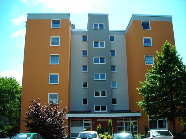 Das Gebäude erhielt eine Rund-um-Sanierung vom Kopf bis zur Sohle. Dach, Fassade und Kellerdecke wurden wärmegedämmt und die alten Fenster gegen neue Wärmeschutzfenster ausgetauscht. Ein mehrfarbiger Anstrich gibt dem Objekt wieder Frische und Lebendigkeit. Auch in den Treppenhäusern sorgt ein neuer Anstrich für frischen Wind.