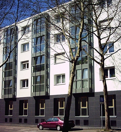 Das Mietshaus an der Lütticher Straße wurde in den 1920er Jahren erbaut. Noch in verhältnismäßig gutem Zustand trafen die Projektvorbereitungen auf unzufriedene Mieter. Jedoch konnte eine informative und stichhaltige Präsentation auch die letzten Zweifler überzeugen und nun freuen sich die Mieter über ihr "Niedrigenergiehaus im Bestand" mit neuen Balkonen.
